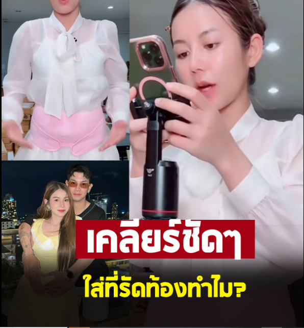 “มันไม่ได้ทำให้น้องไม่โตนะ ในการพยุงหน้าท้องไว้ มันคือแผ่นพยุงหน้าท้อง มันไม่ได้ทำให้น้องไม่โตนะ เพราะตอนนี้เบียร์มีปัญหาในเรื่องมดลูกบีบตัว คุณหมอก็เลยแนะนำนะคะ คุณหมอก็แนะนำให้ใช้แผ่นรัดแล้วก็ให้ยามากิน แล้วก็มียาฮอร์โมน ยาคลายกล้ามเนื้อ ตอนแรกไม่อยากจะพูดหรอกแต่พอคนแบบเดี๋ยวมันอันนั้นอันนี้กับน้องเดี๋ยวมันบีบน้อง อันนี้คือคุณหมอแนะนำมาแล้วทุกคนไม่ต้องเป็นห่วงนะ”
