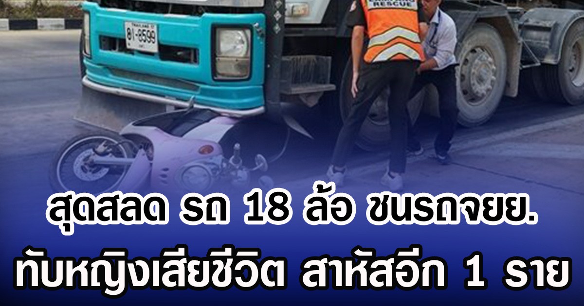 สุดสลด รถ 18 ล้อ ชนรถจยย. ทับหญิงเสียชีวิต สาหัสอีก 1 ราย.