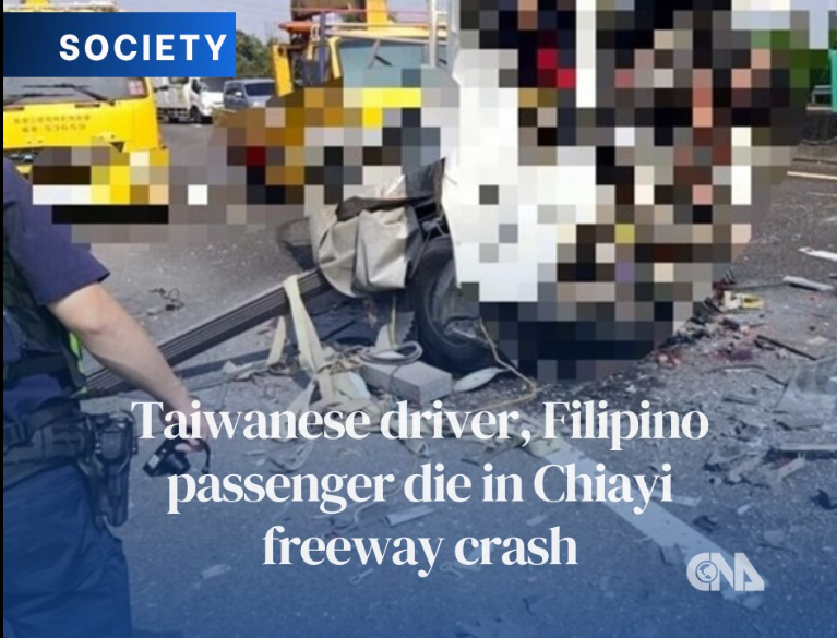 Taipei, Nov. 7 (CNA) A Taiwanese driver and his Filipino passenger were killed Friday on National Freeway 3 in Chiayi County after their light truck collided with the back of another vehicle stuck in traffic.